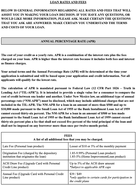 “New Mexico Only: This lender is licensed and regulated by the New Mexico Regulation and Licensing Department, Financial Institutions Division, P.O. Box 25101, 2550 Cerrillos Road, Santa Fe, New Mexico 87504. To report any unresolved problems or complaints, contact the Division by telephone at (505) 476-4885 or visit the website:www.rld.nm.gov/financial-institutions/."